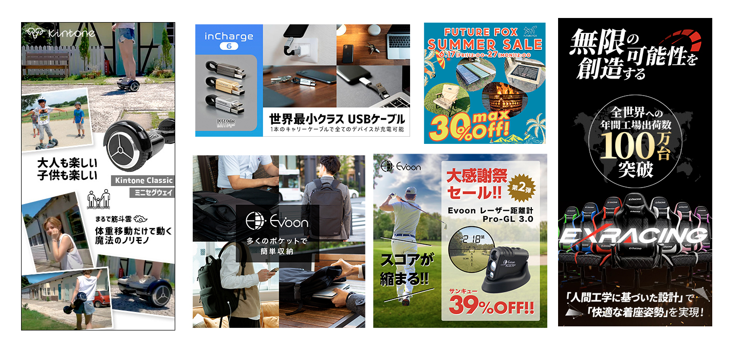 様々な企業様のバナーを手掛けてきました。それぞれの持つ世界観を壊さないように作成しています。